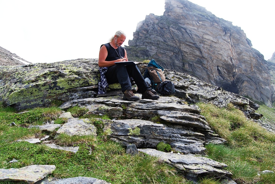 “Dus ik moet mijn leven leiden als een tocht door de bergen, zonder een hütte die ik MOET bereiken, genietend van de wonderen om me heen en mijn rugzak afgooien om zo af en toe een top te bereiken, wetend dat de extra inspanning tot extra duidelijkheid en een gevoel van euforie zullen leiden?” “Zo ongeveer.” |