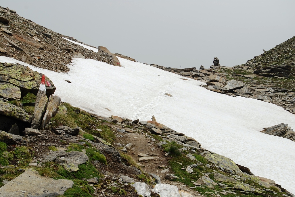 28 juni 2007 “De boodschap was duidelijk!” “Wat bedoel je?” “Toen ik wakker werd, bleek het de hele nacht gesneeuwd te hebben.” “Dat gebeurt in de bergen.” “Ja, maar toen het langzaam een beetje opentrok, begon de sneeuw te smelten …” “…?!” “Alleen op het stuk dat naar beneden ging, het dal in. De sneeuw op de route naar de BMH bleef liggen. Zelfs met een gezonde knie werd die route afgeraden!” “Dat zijn de tekens waardoor je je moet laten leiden.” |